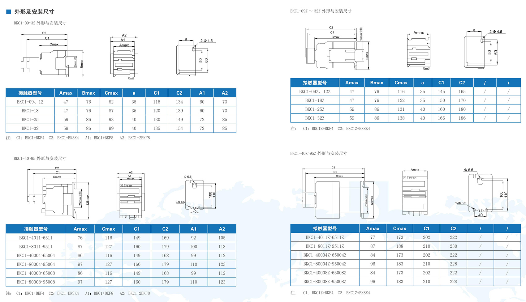BKC1-09~95系列交流接觸器,主要用于交流50Hz(或60Hz),額定絕緣電壓為690V,在AC-3使用類別下額定工作電壓為380V時額定工作電流為9A~95A的電路中,供遠距離接通與分?jǐn)嚯娐芳邦l繁起動、控制交流電動機;并可與適當(dāng)?shù)臒徇^載繼電器組成電磁起動器,以保護可能發(fā)生過負荷的電路。產(chǎn)品符合標(biāo)準(zhǔn):IEC 60947-4,GB/T 14048.4,IEC 60947-5,GB/T 14048.5