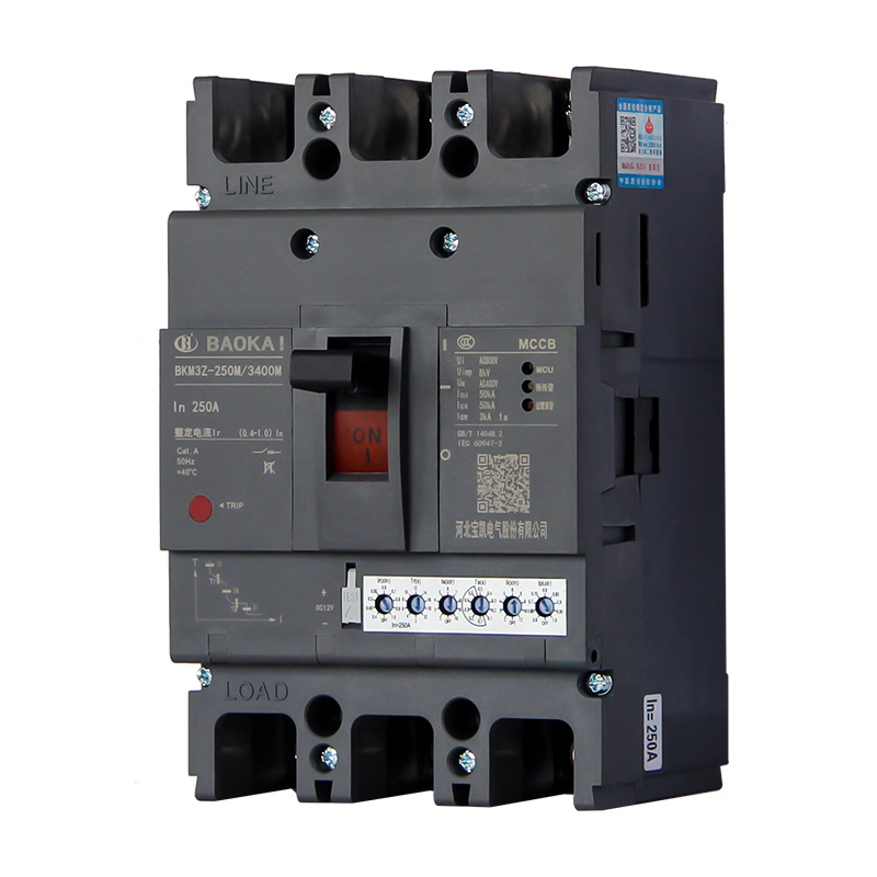 BKM3Z系列智能型塑料外殼式斷路器適用于交流50Hz,額定絕緣電壓為800V,額定工作電壓至 400V,額定電流至 800A的電路中作不頻繁轉(zhuǎn)換及電動機不頻繁起動之用。具有過載長延時反時限、短路短延時反時限、短路短延時定時限、短路瞬時和欠電壓保護功能,能保護線路和電源設(shè)備不受損壞。本系列斷路器具有隔離功能。本系列斷路器可垂直安裝 ( 即豎裝 ),亦可水平安裝 ( 即橫裝 )。本系列斷路器執(zhí)行標準:IEC 60947-1及GB/T 14048.1 《低壓開關(guān)設(shè)備和控制設(shè)備 第1部分:總則》IEC 60947-2及GB/T 14048.2 《低壓開關(guān)設(shè)備和控制設(shè)備 第2部分:斷路器》IEC 60947-4及GB/T 14048.4 《低壓開關(guān)設(shè)備和控制設(shè)備 第4-1部分:接觸器和電動機起動器 機電式接觸器和電動機起動器(含電動機保護器)》IEC 60947-5及GB/T 14048.5 《低壓開關(guān)設(shè)備和控制設(shè)備 第5-1部分:控制電路電器和開關(guān)元件 機電式控制電路電器》