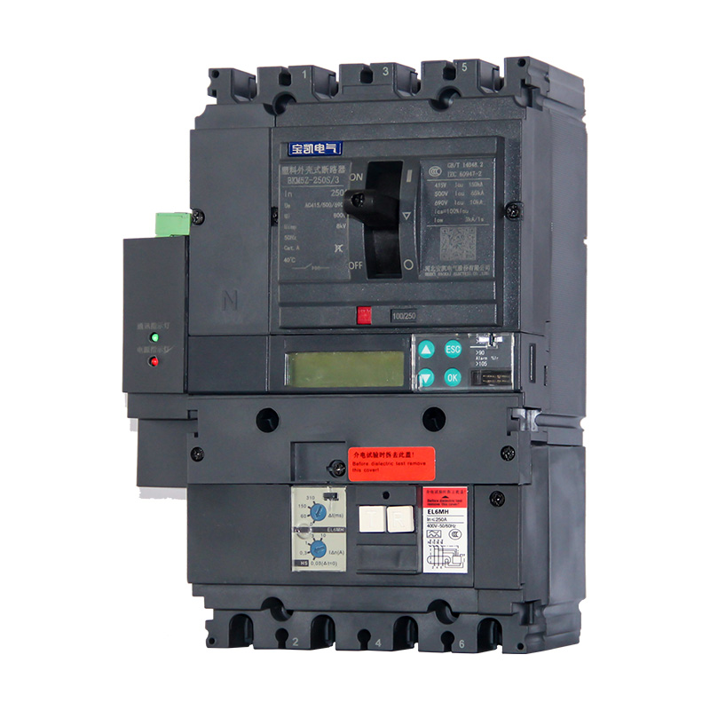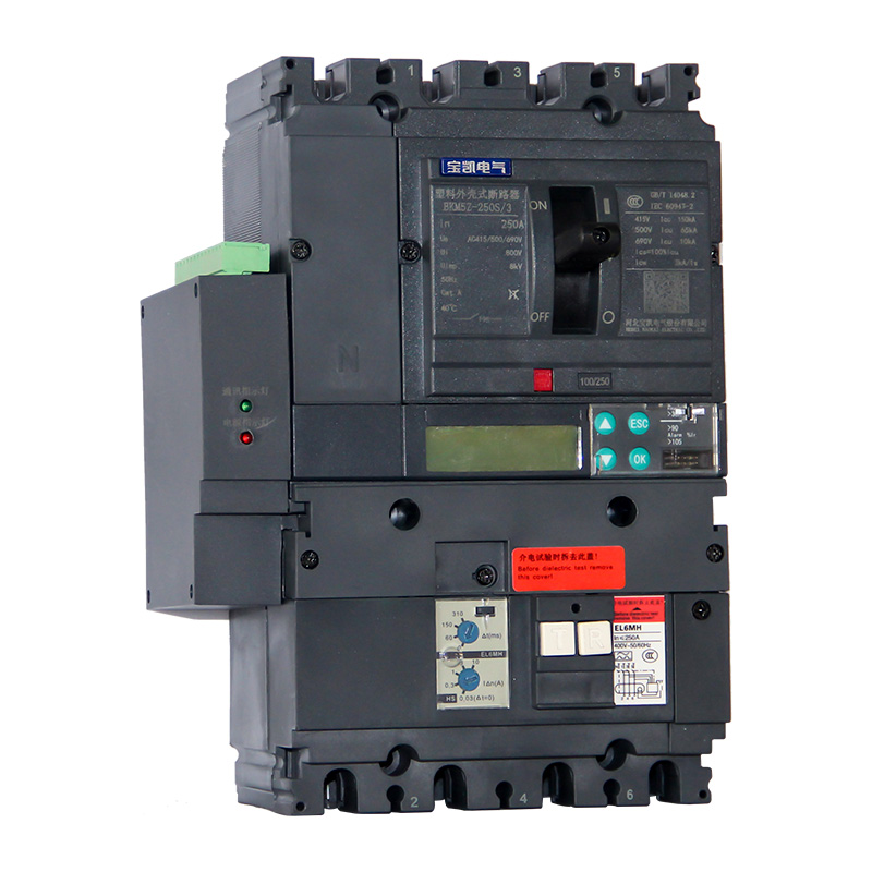 BKM5 系列塑料外殼式斷路器適用于交流50Hz,額定絕緣電壓1000V,額定工作電壓至690V,額定電流12.5A至1600A的配電網(wǎng)絡(luò)中,用來分配電能和保護線路及電源設(shè)備免受過載、短路、欠電壓等故障的損壞。亦可作為電動機的不頻繁起動及過載、短路、欠電壓保護。加裝Vigi剩余電流保護模塊的斷路器,只能上進線。MIC5.0E智能型斷路器只能上進線。其他規(guī)格的斷路器,既可上進線,也可下進線。本系列斷路器具有隔離功能。本系列斷路器可垂直安裝(即豎裝),亦可水平安裝( 即橫裝)。本系列斷路器執(zhí)行標(biāo)準(zhǔn):IEC 60947-1及GB/T 14048.1 《低壓開關(guān)設(shè)備和控制設(shè)備 第1部分:總則》IEC 60947-2及GB/T 14048.2 《低壓開關(guān)設(shè)備和控制設(shè)備 第2部分:斷路器》IEC 60947-4及GB/T 14048.4 《低壓開關(guān)設(shè)備和控制設(shè)備 第4-1部分:接觸器和電動機起動器 機電式接觸器和電動機起動器(含電動機保護器)》GB/T 22710《低壓斷路器用電子式控制器》